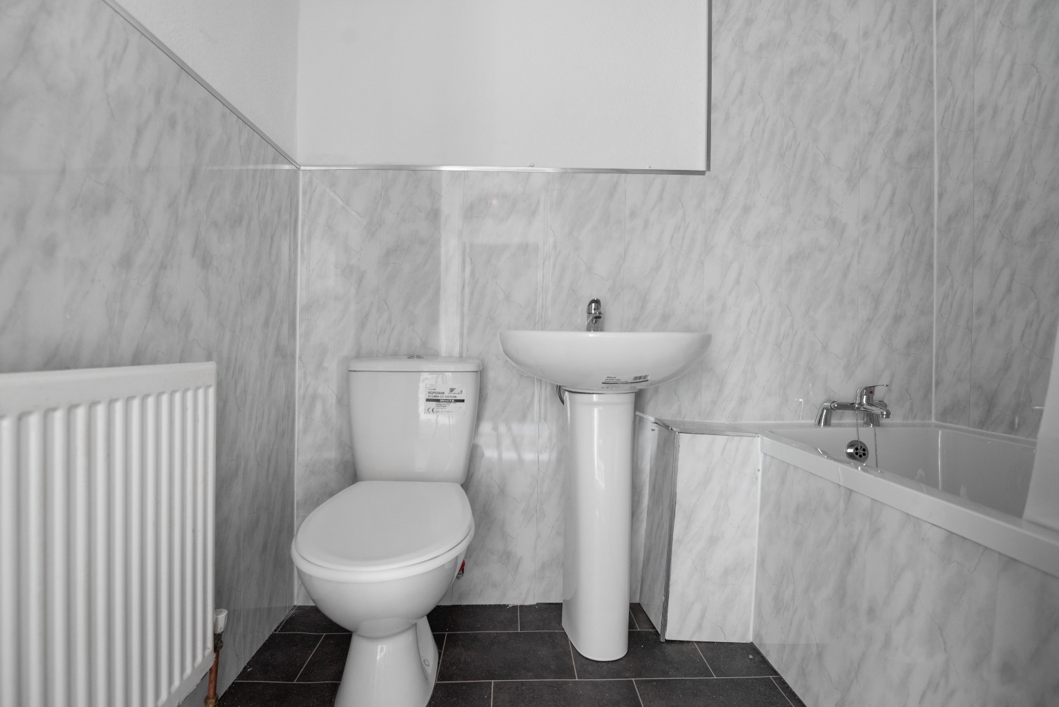 The bathroom has been newly refurbished and features a modern suite, including a W.C., wash hand basin, and an electric shower over the bath. Its sleek, contemporary finish adds to the overall appeal of the flat.
