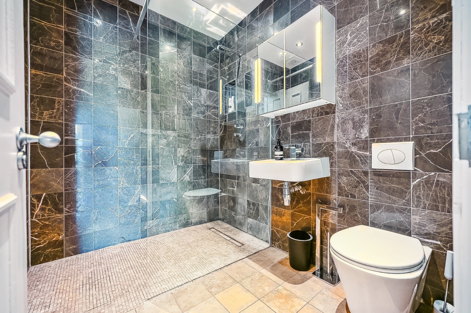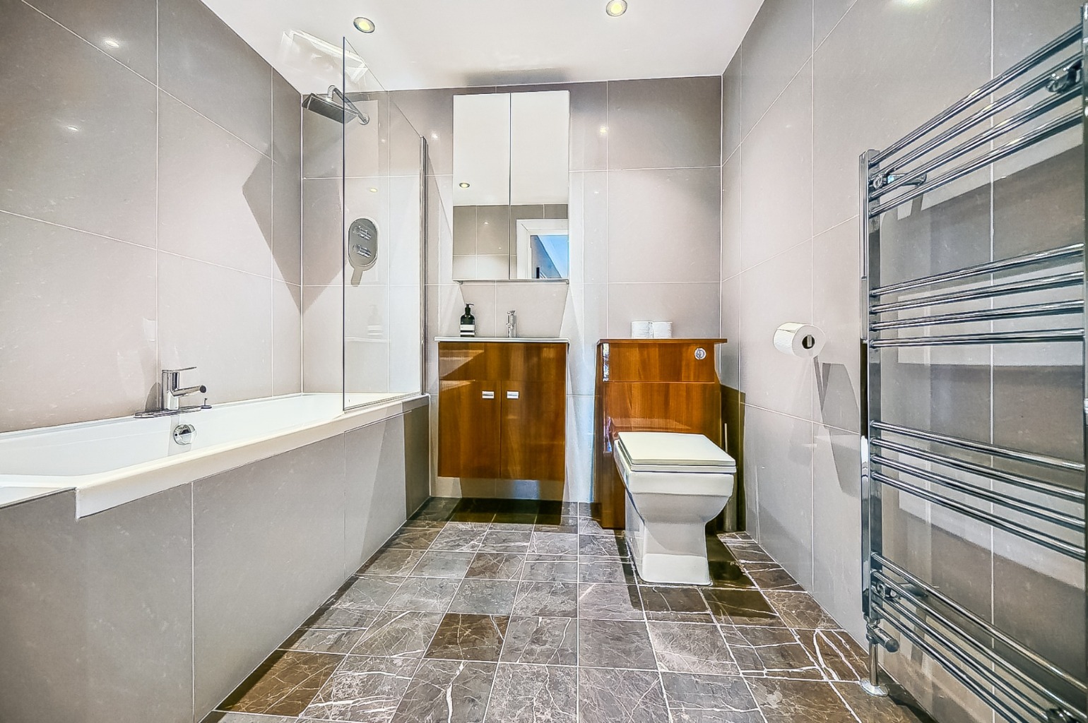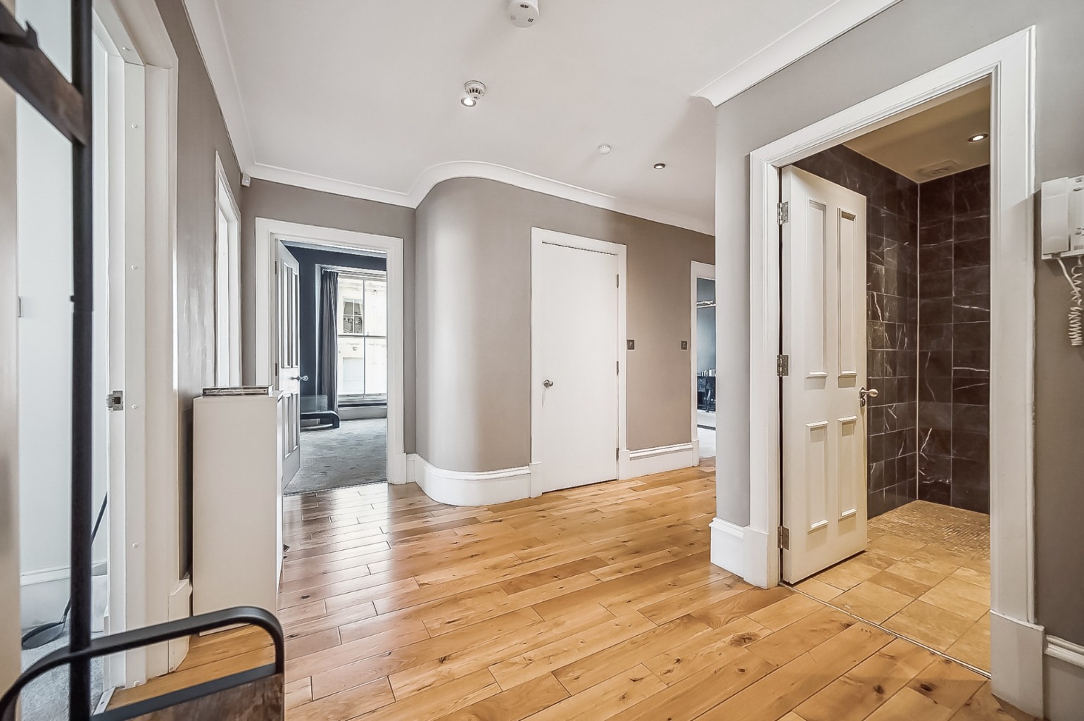 There are three double bedrooms, including a substantial front facing principal, alongside two further generous rooms offering flexibility for guests, home working or family life. A modern bathroom with three piece suite and shower over bath is complemented by a stylish fully tiled shower room with walk-in enclosure.